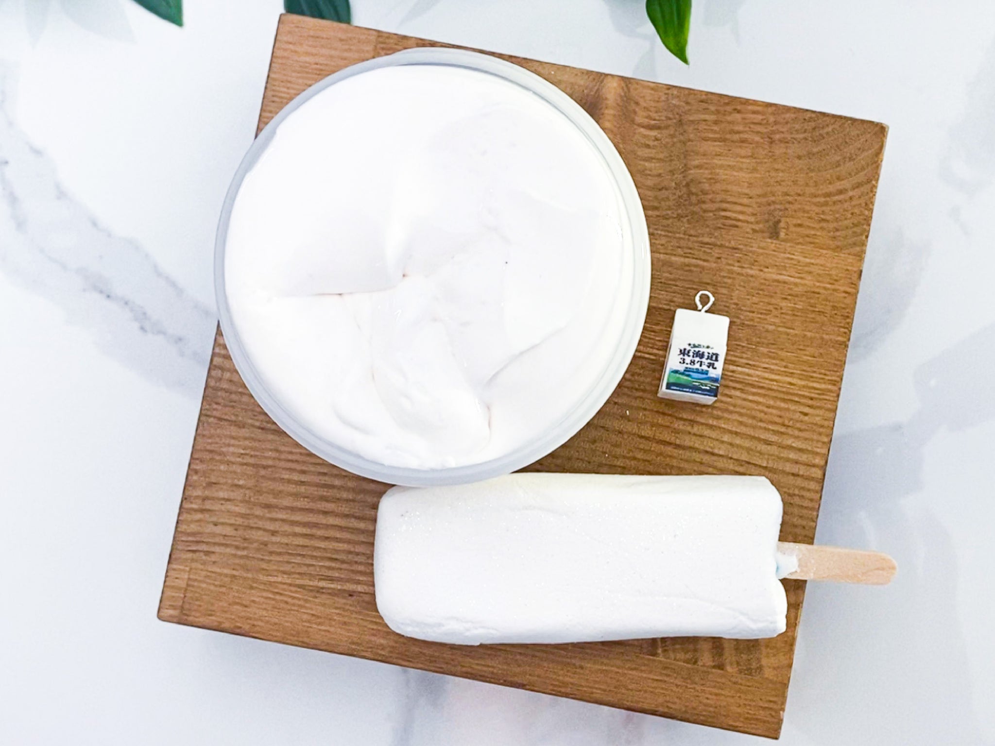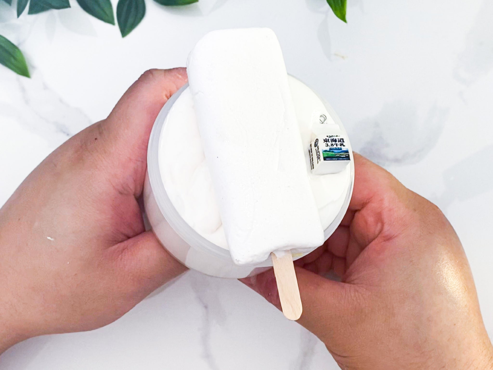 HOKKAIDO MILK ICE BAR is the real deal, it is scented in your face HOKKAIDO MILK, VERY VERY MILKY! It is mixed with condensed milk and vanilla ice cream. Each slime comes with a Hokkaido Milk charm (that you can even use to make a piece of jewelry with or key ring, yay!), and a clay ice cream bar. It is inspired by Lotte's Hokkaido Milk Ice Bars from Japan. The end result texture is reaaaally hefty, fluffy, creamy, and yum.